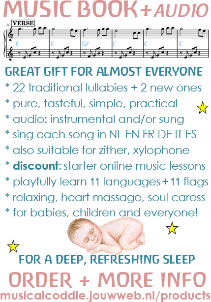 Songs from 11 countries, each song in the original language and in Nederlands/ English/ Français/ Deutsch/ Italiano/ Español. Also songs in Chinese, Russian, Zulu, Hungarian and Icelandic. More info, incl. audio/ video.